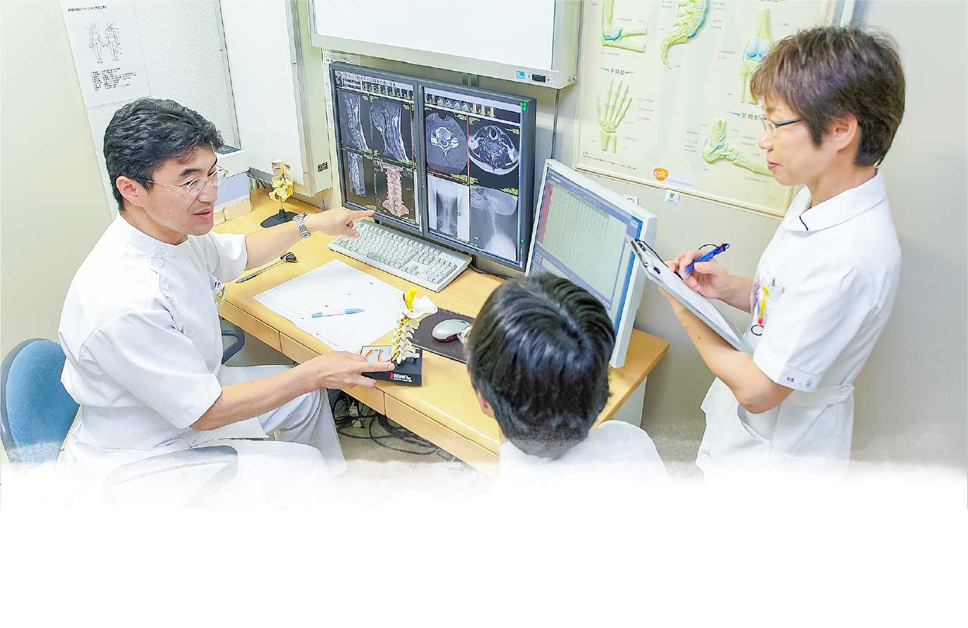 当院の整形外科では、特に関節や骨に対しての治療を専門分野の専門医が担当して行っております。 骨切り術・人工関節置換・各種固定術・脊柱管形成術・椎間板ヘルニア手術・リハビリにも力を入れており、早期退院・早期社会復帰が可能となるよう努力しております。 椎間板ヘルニアに関して、患者さんに合わせた様々な手術方法を選択しております。従来法よりも早期に退院可能なレーザー治療も行っておりますので、ぜひ外来受診時にご相談ください。